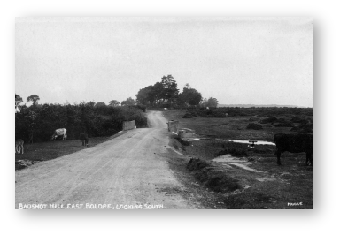 The photograph shows Bagshot Hill looking south towards East Boldre School which is behind the tall trees in the middle of the photo. Note, there are more trees today than before the war when this photo was taken.
