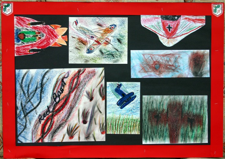 Children from Year 5 of South Baddesley Primary School were asked to prepare scrapbooks anf poppy tributes to lay on the WW1 graves of J. L. Morrison, J. Hogan, V. M. Kidd, Arthur F. Belyea and Austin Wyard Blackie. The scrapbooks contained their project work on these servicemen, the WW1 airfield at East Boldre, the aircraft that visited East Boldre and WW1 in general. They also produced some artwork.