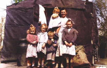 Photo shows the Wells family at Shave Green compound during the 1960s. Left to right are Pauline, Susie, Kennie, mum Eileen with baby Shirley and Linda. Photo by Jack Loveland.